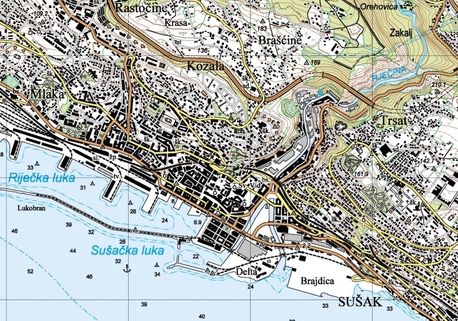 podataka, dešifraža te kontrolni pregled, nakon čega slijedi tisak karte. Svi topografski objekti (reljef, vode, vegetacija, naselja, prometnice i područja) prikazani su s istom važnošću.